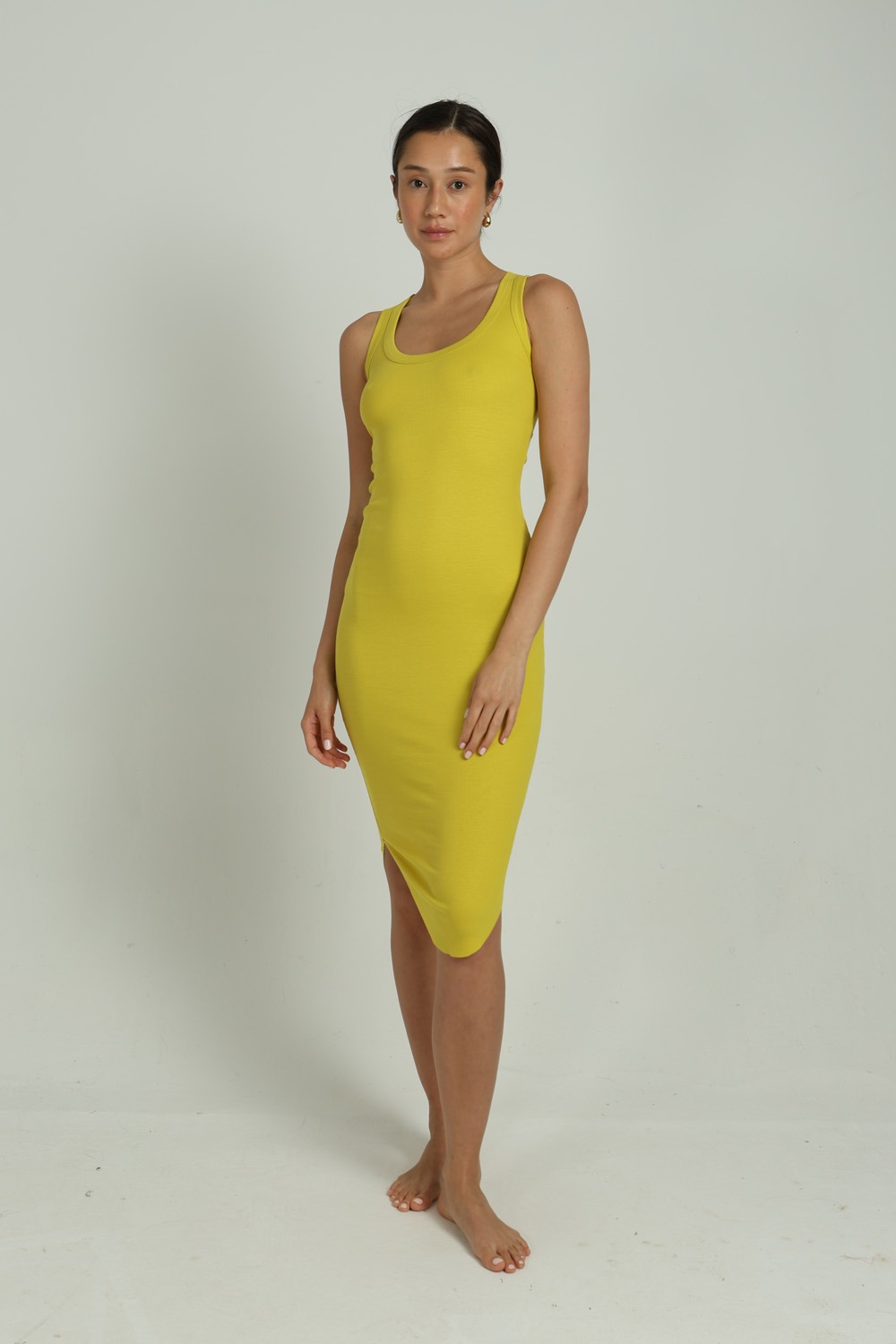 Make a statement in our ALLEGRA DRESS, featuring a sleeveless tank design and a form-fitting shape that highlights your figure beautifully.
