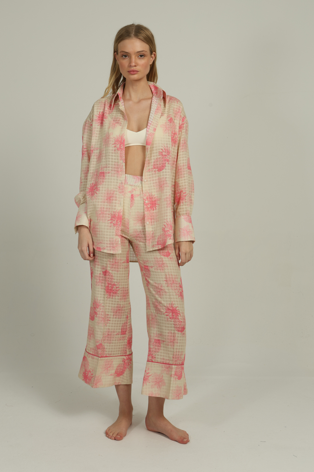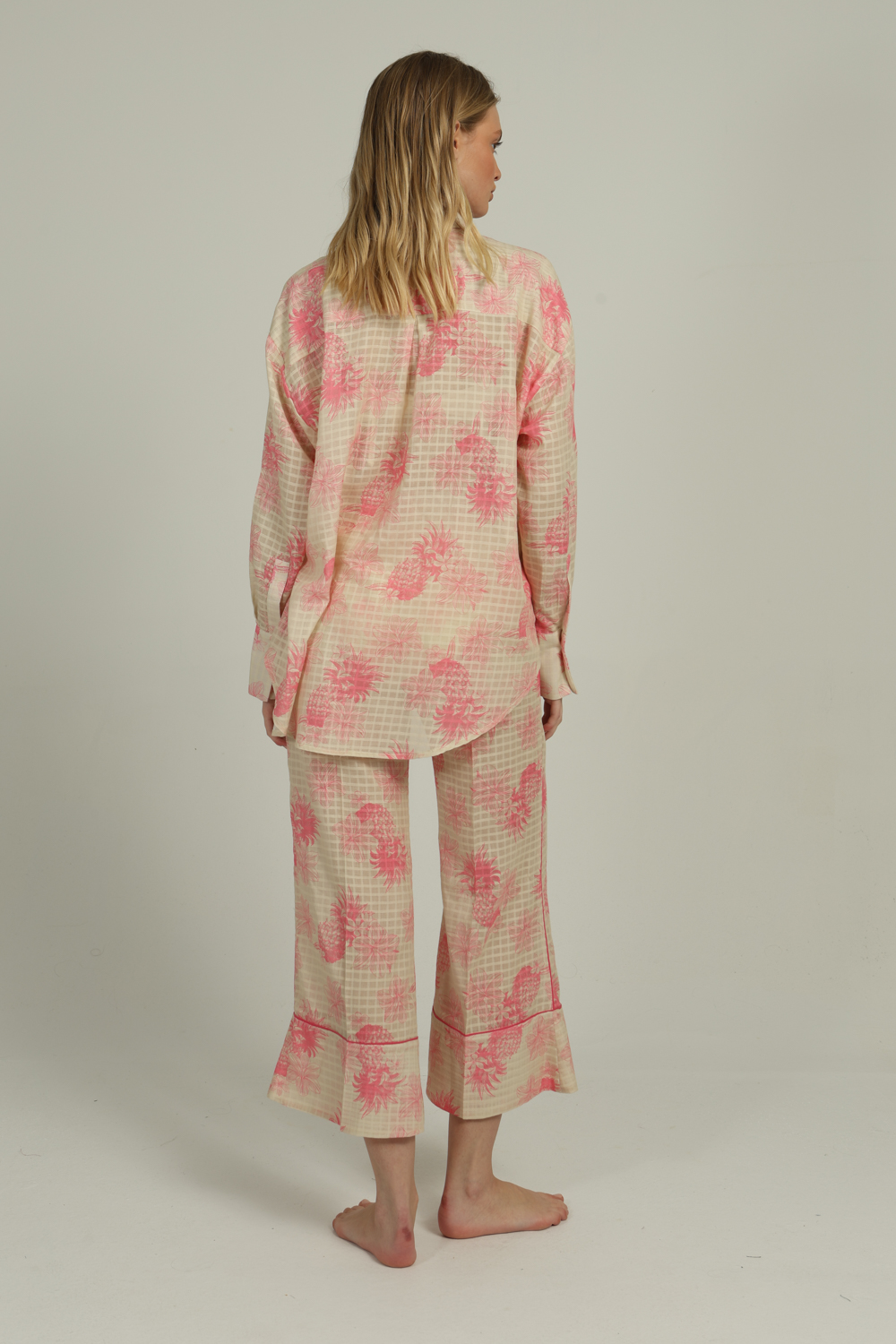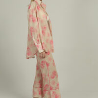 The ANGELINA is a soft, silky, lightweight shirt with long sleeves, perfectly paired with our EVELYN PANTS.