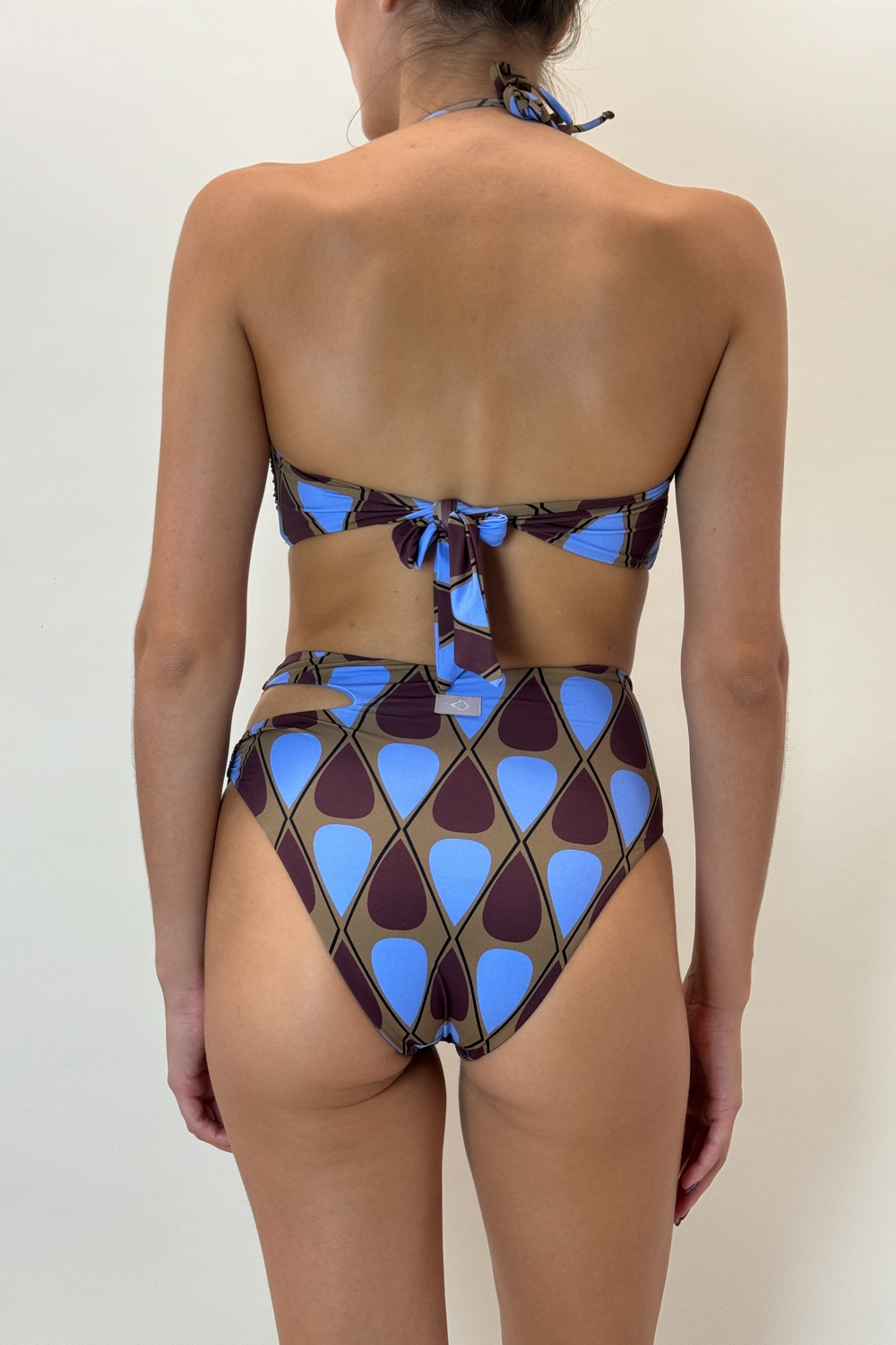 The DONA BOTTOM is a high-rise piece with a cut-out detail on the left side, which spreads out to the front and creates a flattering image, paired with the DONA TOP, it makes the perfect summer set!