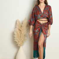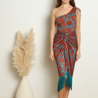 The GISELLE PAREO is a twist of the classic, as it is made of a silky fabric and its main characteristic is the soft fringes at the bottom which give it a beachy look. It can be tied in many ways, side, middle or back for versatile styling options. Style it with our DELPHI CROP TOP for an evening out!