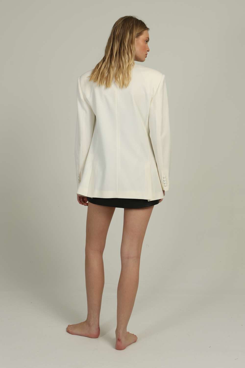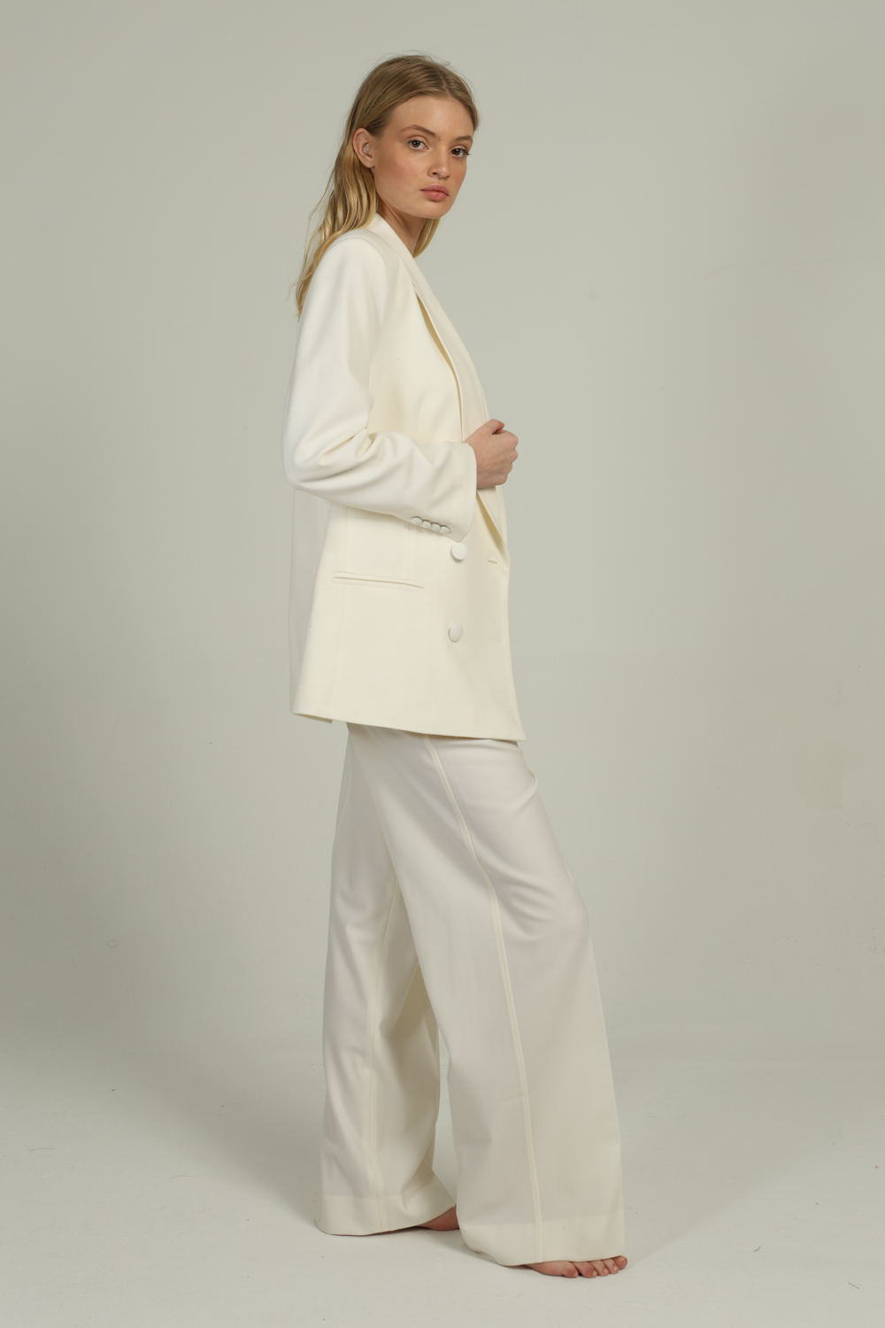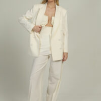 Sharp tailoring meets relaxed intention. HOPE JACKET is a double-breasted blazer with a longline cut, structured shoulders, and a soft drape through the body. Finished with tonal buttons and discreet pockets, it’s designed to be worn with the HANNA PANTS or as the perfect complement to your wardrobe staples.