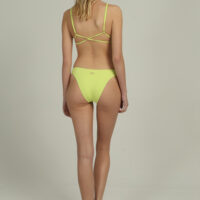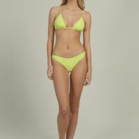 The MILLA TOP is a classic style triangle with a double strap at the bottom which ties at the back for a customizable fit. Paired with the MILLA BOTTOM it creates a cute, everyday bikini!