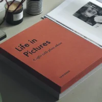 Discover the “Life in Pictures Coffee Table Photo Album” from PRINTWORKS, featuring an elegant terracotta cloth cover with black text. Inside, you’ll find 30 pages of high-quality black photo paper, allowing you to attach your photos easily using stickers or photo corners, which are bought separately.