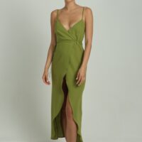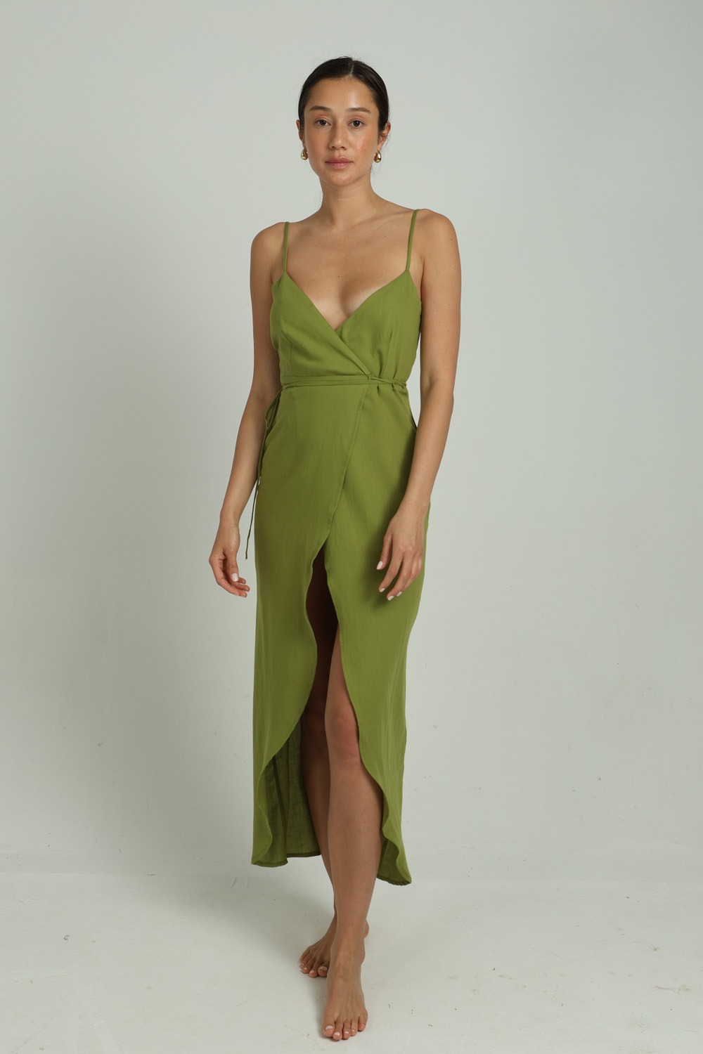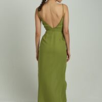 The YVONNE DRESS can be described a slip dress with thin straps and a slit, flattering the silhouette, accompanied by tie strings that can be tied in many different ways for a versatile look.